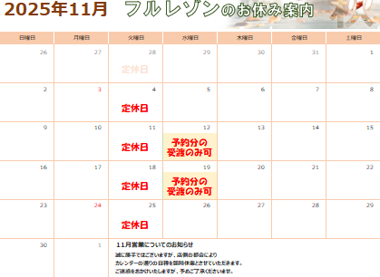 誠に勝手ながら、店側の都合により以下カレンダー通りの日程で営業いたします。