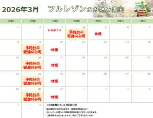誠に勝手ながら、店側の都合により以下カレンダー通りの日程で営業いたします。