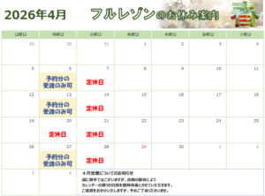 4月の店休日のお知らせです。